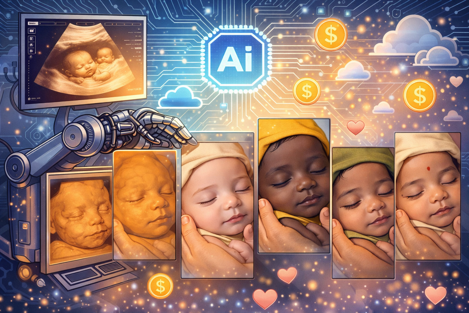 Con la llegada de las IA Generativas se han abierto miles de mercados que aún deben demostrar ser rentables1. La ansiedad de los futuros padres abre múltiples posibilidades para conseguir dinero. Cuántos de nosotros hemos visto las imágenes de ultrasonido pegadas en heladeras o regaladas como souvenir. La posibilidad de “ver” al futuro recién nacido antes de que nazca se hace prácticamente irresistible.